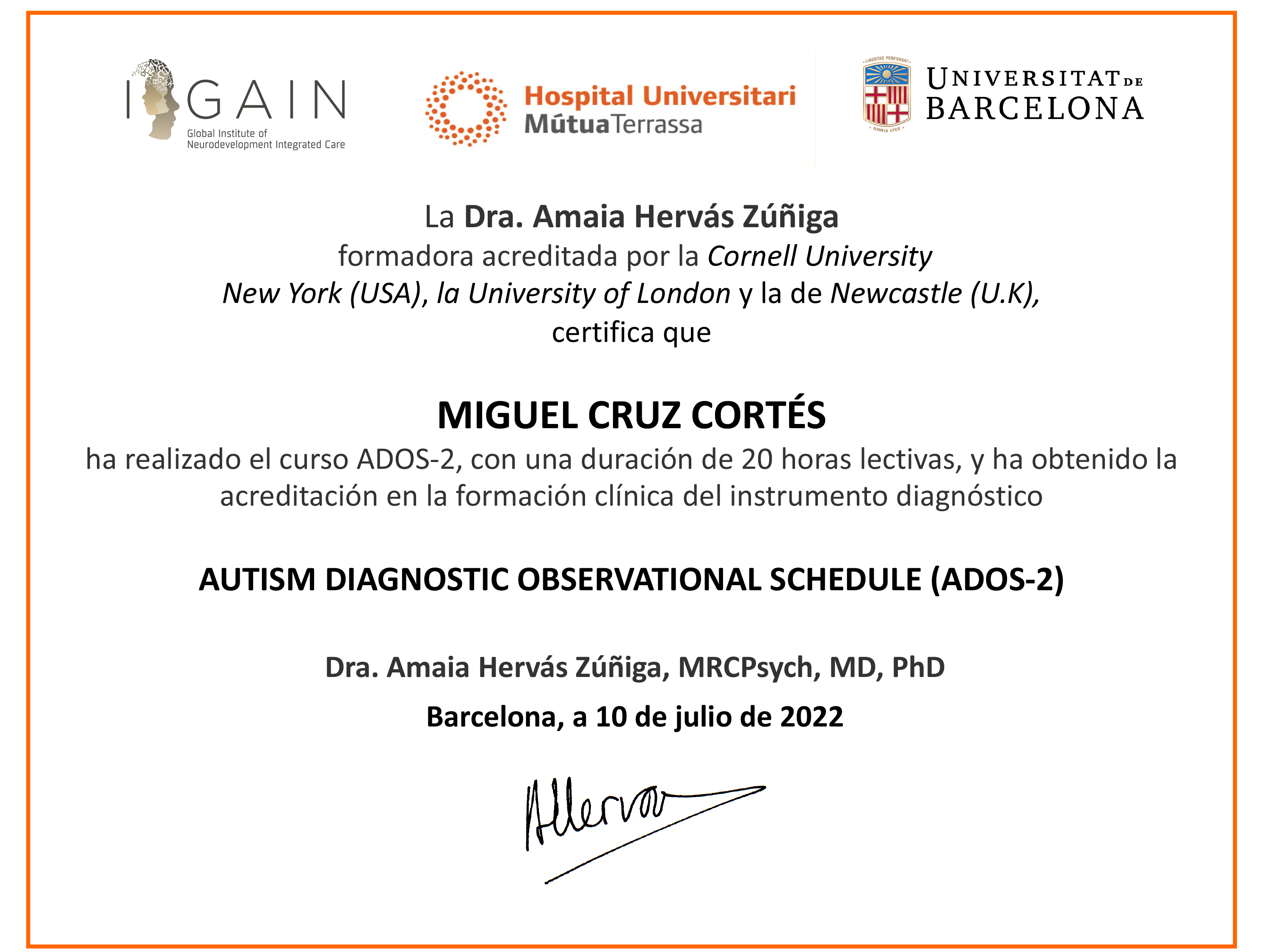 Desde nuestra disciplina, destacamos dos instrumentos de evaluación que pueden usarse como herramienta orientativa, pero nunca única: La Escala de Observación para el Diagnóstico del Autismo (ADOS-2) y la Entrevista para el Diagnóstico del Autismo Revisada (ADI-R), las cuales son complementarias y permiten la estimación del nivel de afectación de las conductas que son características del espectro autista.